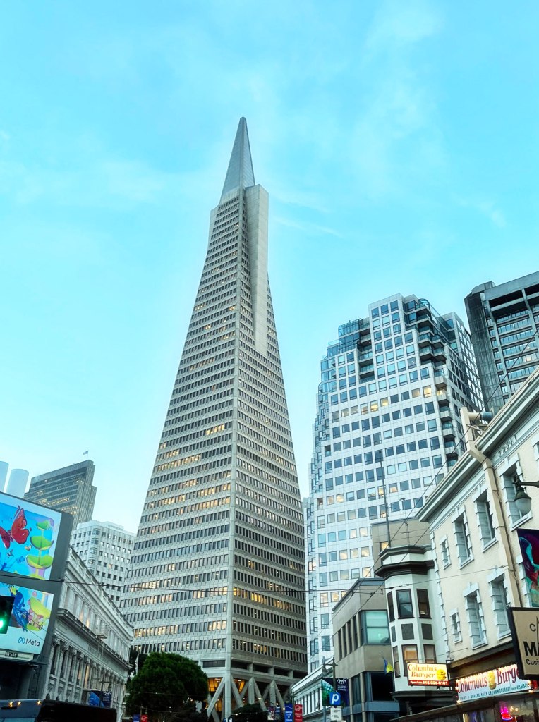 The Transamerica Pyramid is a 48-story futurist skyscraper. Located in the city’s Financial district, it was the tallest building in San Francisco from its completion in 1972 until 2018 when the newly-constructed Sales force Tower surpassed its height.