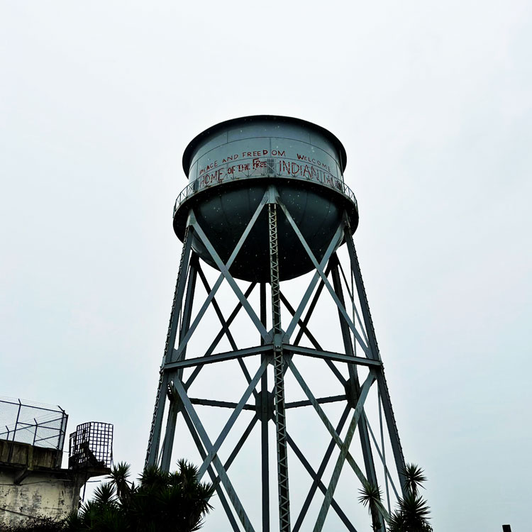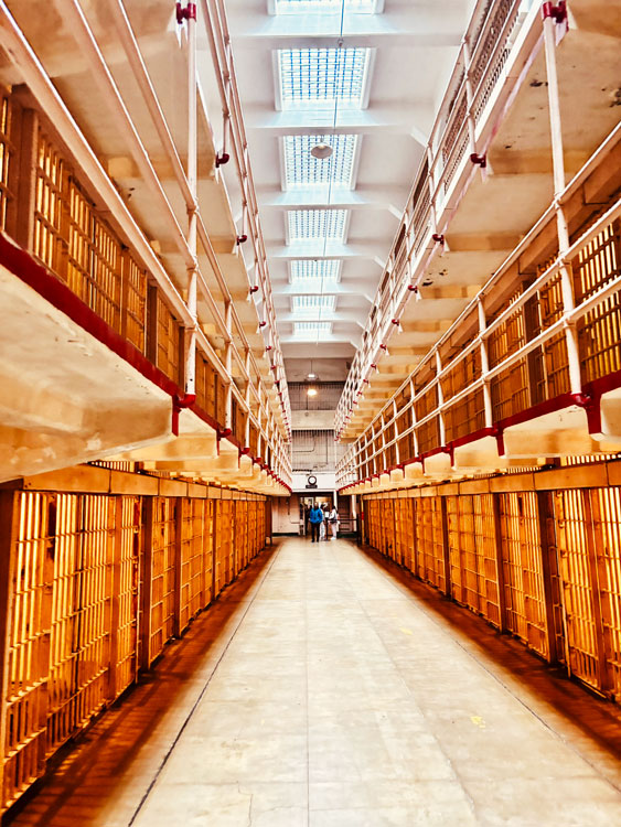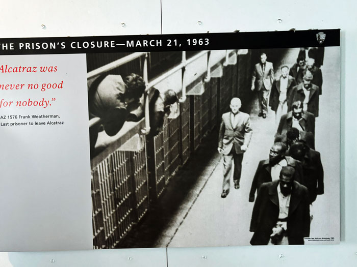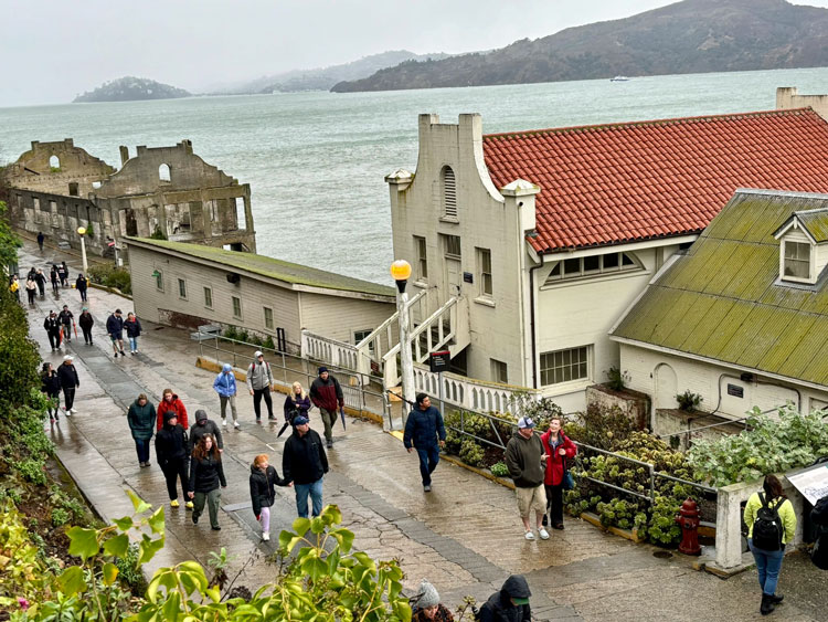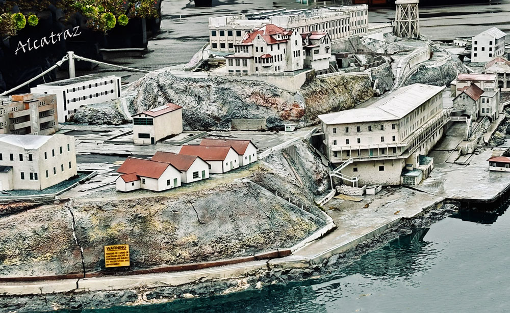 Alcatraz Island is a small island 2.01 km offshore from San Francisco. The island was developed in the mid-19th century with facilities for a lighthouse, a military fortification, and a military prison. In 1934, the island was converted into a federal prison. The strong currents around the island and cold water temperatures made escape nearly impossible, and the prison became one of the most notorious in American history. The prison closed in 1963.