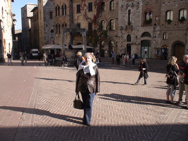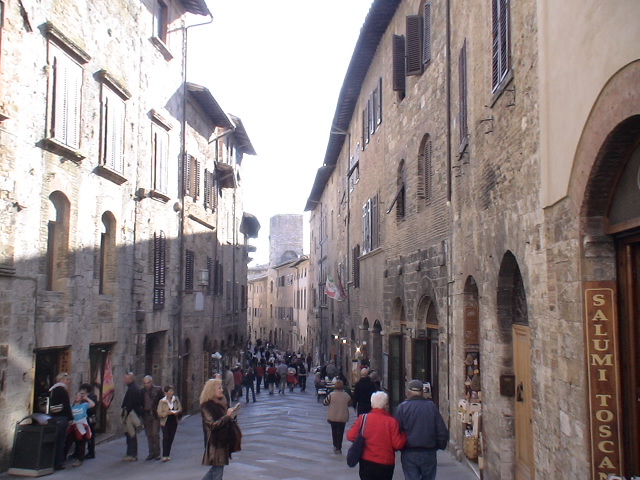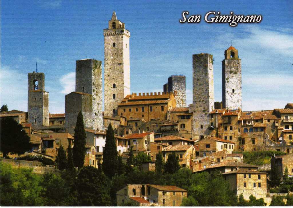 San Gimignano is a small walled medieval hill town in the province of Siena, Tuscany. This hill was the location of a small Etruscan village during the Hellenistic period (200-300 BC) and San Gimignano began its life as a town in the 10 C, being named after the Bishop of Modena, St. Gimignano, who is said to have saved the village from the barbarian hordes.