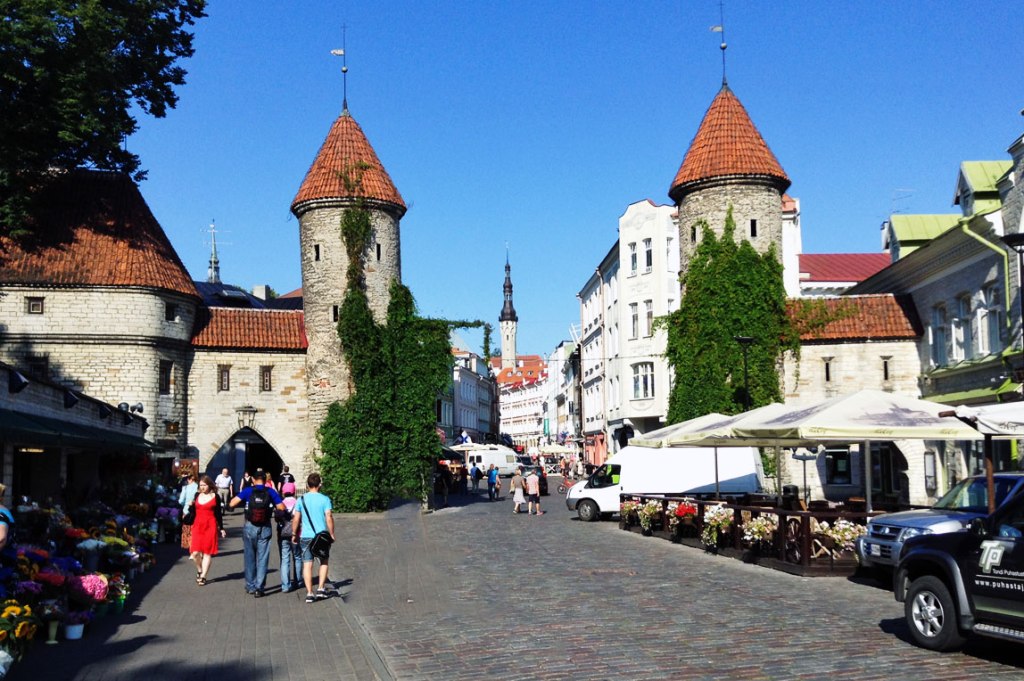 Viru Gate, entrance to the Old Town. One of two remaining towers that were once part of a larger gate system built in the 14th century.