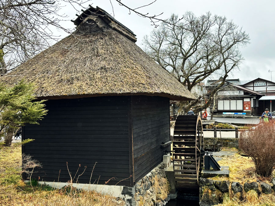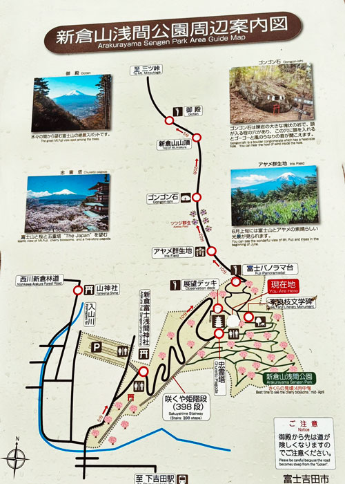 Information sign for Wakuike Pond at Oshino Hakkai Springs, detailing its significance and historical context.