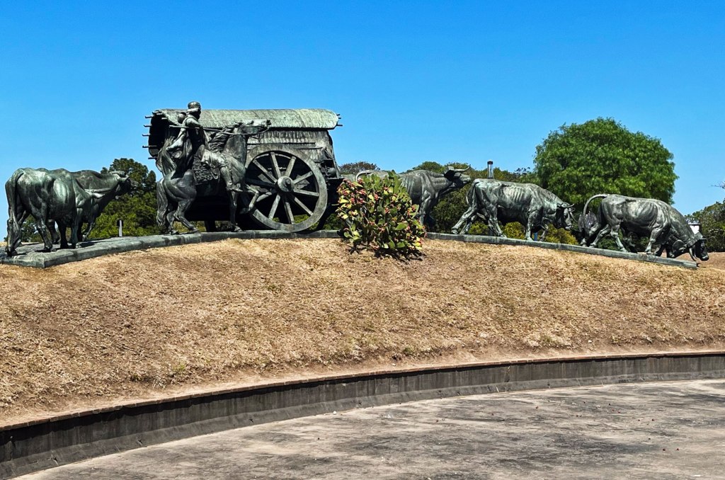 In 1934, sculptor Jose Belloni’s “La Carreta”, a bronze monument on granite base, was installed on Avenida Lorenzo Merola near Estadio Centenario. One of several statues in the park, it depicts yoked oxen pulling a loaded wagon. It was designated a national monument in 1976.