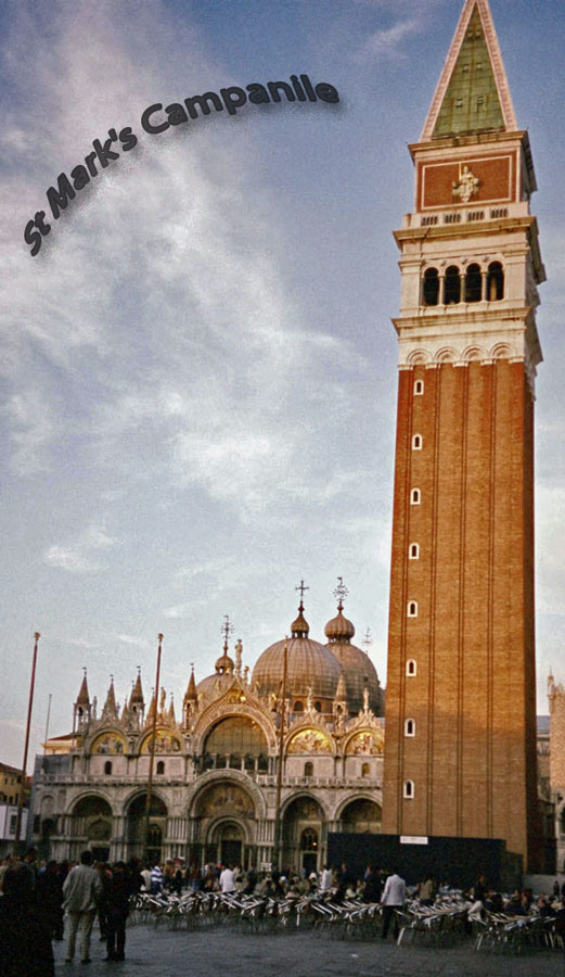 St Mark’s Campanile is the bell tower of St Mark’s Basilica. located in the square (piazza) of the same name. It is a recognizable symbol of the city. The tower is capped by a pyramidal spire, at the top of which sits a golden weathervane in the form of the archangel Gabriel. The campanile reached its present form in 1514. As it stands today, however, the tower is a reconstruction, completed in 1912 after the collapse of 1902.
