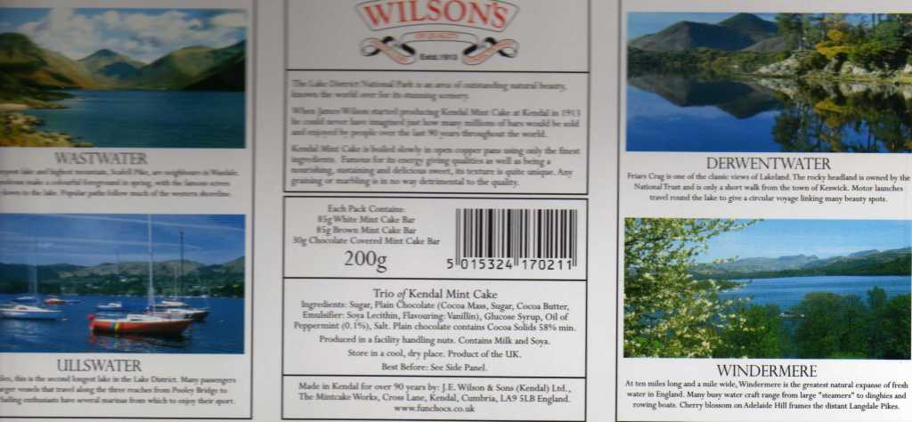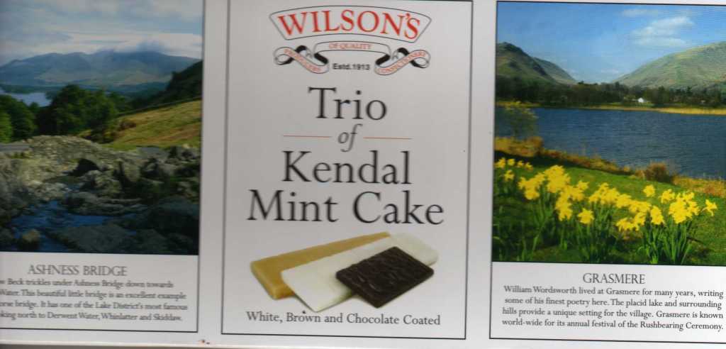 Kendal Mint Cake is a glucose-based confectionery flavoured generally with peppermint. It originates from Kendal in Cumbria. Kendal Mint Cake is popular among climbers and mountaineers, especially those from the U.K., as a source of energy. I tried it and it tasted OK. It was not as good as I thought it would be.
